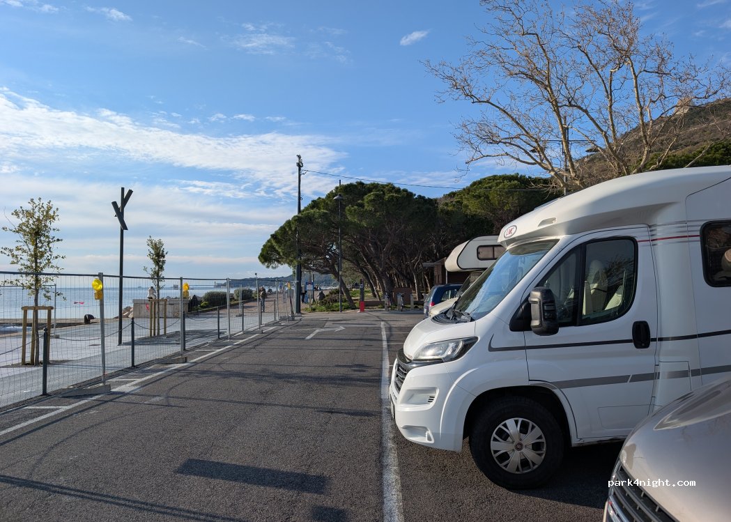 Legale und kostenfreie Parkmöglichkeit für Wohnmobile, direkt am Hafen und nah beim Wasser. Ausreichend große Parkbuchten. An das Nachtparkverbot hält sich tatsächlich niemand. Das scheint auch die Polizei nicht zu stören, die hier abends präsent ist. Morgens um sieben sind noch Parkplätze frei (Hauptsaison). Ab 8:00 Uhr ist alles belegt.