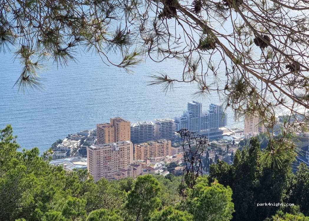 Spectacular view over Monaco. We slept at the lower parking level, and even though it's on the highway, it was very quiet. There is a picnic area, kids' playgrounds, toilets, showers... Excellent place!!!