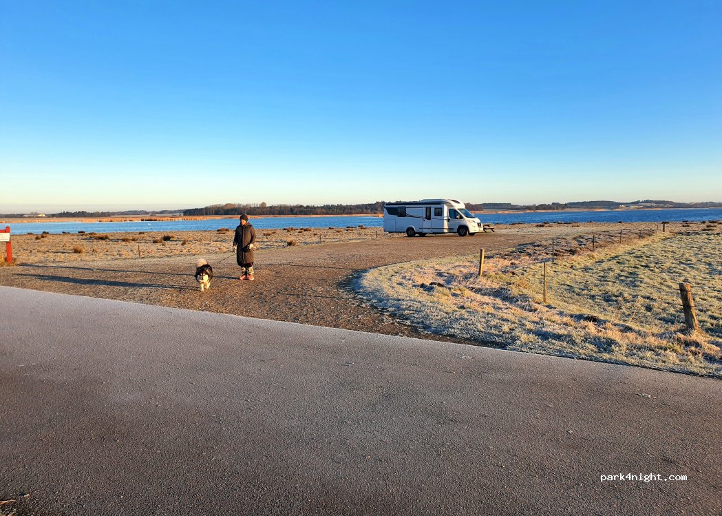 Absolutely 100% nature on a peninsula i Lake Vilsted south of a bridge dividing the lake into two parts and next to a big bird tower and grill. Walking and cycling tours around the lake are 20 km or 12 if you take the bridge. Very quiet - almost isolated.- There are 2-3 more P-lots at the lake but this one is the best.