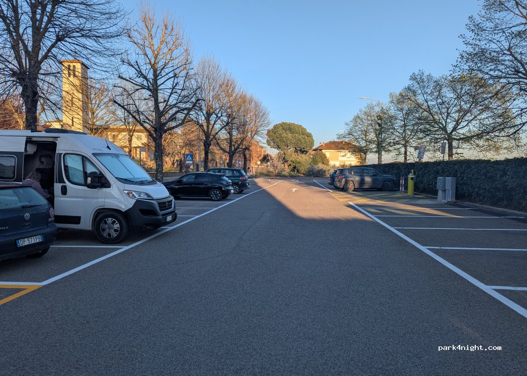 ho sostato per la notte senza problemi. Luogo molto silenzioso deliziato solo dai rintocchi della chiesa adiacente. Relax assoluto. Non ci sono servizi. Il martedi presenza di mercato locale la mattina dalle 06 alle 14.