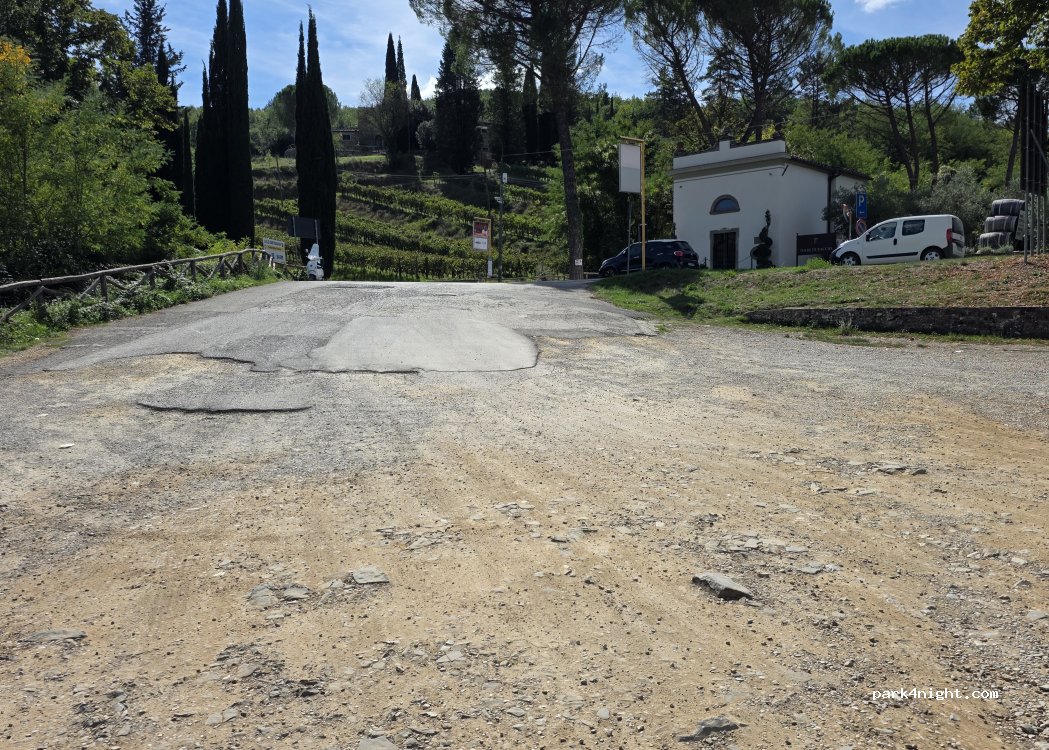 parking parfait pour visiter la ville et monter à Montefioralle à vélo à 2km. attention belle montée. terrain en pente nous ne sommes pas resté pour la nuit.