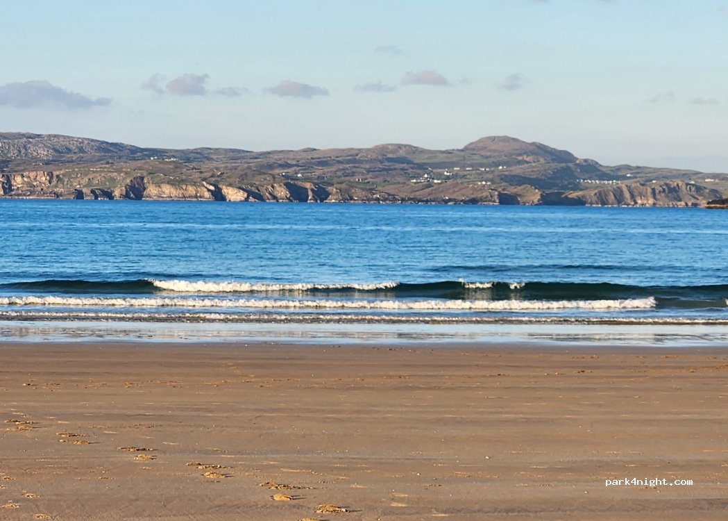 Come across the golf course via tarmac road then opens up to car park. No toilets now but fresh water. Walk straight to a beautiful beach. Spent one night and we were all on our own. Very very quite lovely sleep. Toilets are 3 mins away in small town by the pier. ( Dunfanaghy) No vans over 2 meters from 1st June to 1st September. 4 star as now no toilets but a lovely place to stay .