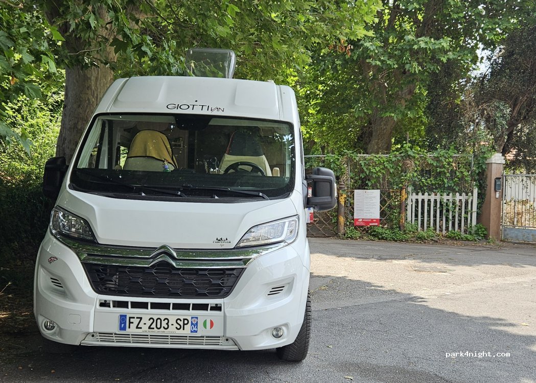 Posizione tranquilla lungo un terrapieno, di fronte a un cancello non passante chiuso, in una curva, in una zona sotto gli appartamenti. Ho parcheggiato lì durante il giorno di mercato senza problemi.