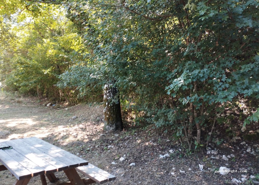 Beautiful picnic area, with large parking on grass and partially shaded by giant oaks. Several tables available and four large brick barbecues. Fresh and silent. There are several anti camping signs but campers can stop.