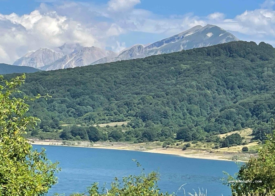 Beautiful location right beside the lake. No services. Picnic benches and bbq pits available. At 1,400m altitude so gets a bit chilly at night now. Great place for hikes and a ride around the lake is stunning. Visit Campotosto, a beautiful tiny village devastated by 2017 earth quakes. Give them some support.