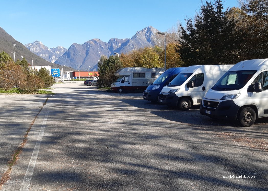 It is the parking of the lidl and the eurospin, there are two parking spaces, one that belongs to the supermarkets and the other outside, when we arrived there was a caravan parked