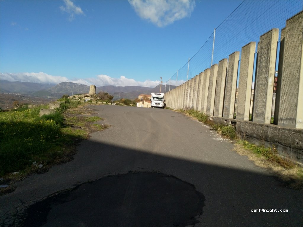 É il parcheggio del campo sportivo, quindi se ci sono attività si riempie di auto. Al mattino presto tra l’altro arrivano lavoratori. Non é pertanto molto tranquillo, ma in zona non ci sono alternativa. Massima attenzione a non arrivare dalla strada lastricata che scende dal paese, c’é un avvallamento ingannevole, noi abbiamo toccato con il posteriore e danneggiato il camper.