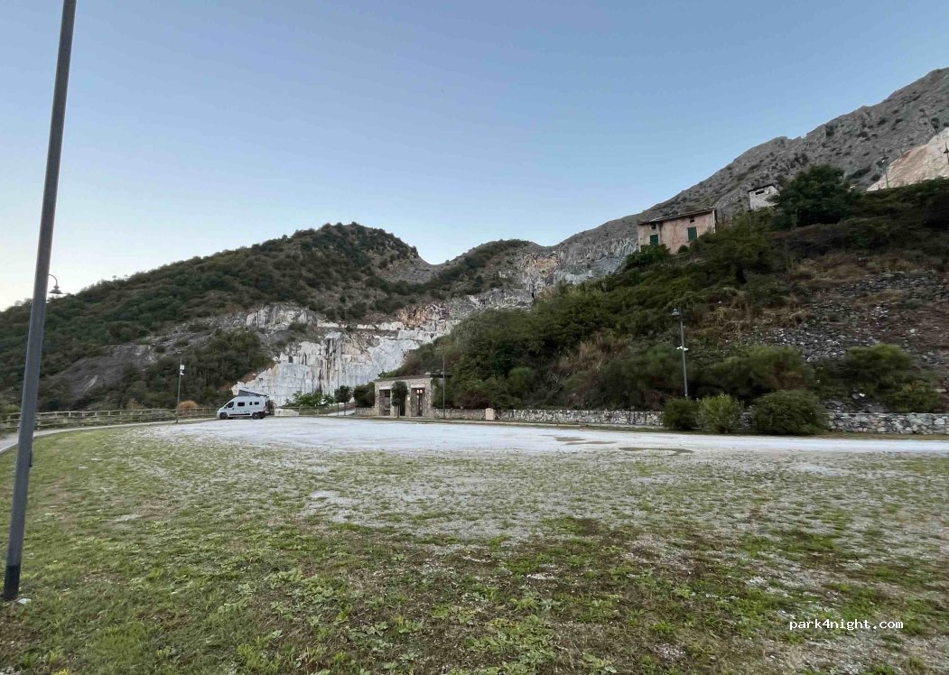 Vista super, parcheggio tutto per noi. Solo qualche auto di passaggio per vedere il panorama. Parking senza uscita quindi no traffico. Fine settimana tranquillo, lunedì mattina iniziano i lavori nelle cave alle 6 ma il rumore è distante. Strada di accesso non ripida ma dissestata (è fattibile controllarne lo stato salendo a piedi), sconsigliata a mezzi pari o superiori a un camper o auto basse.