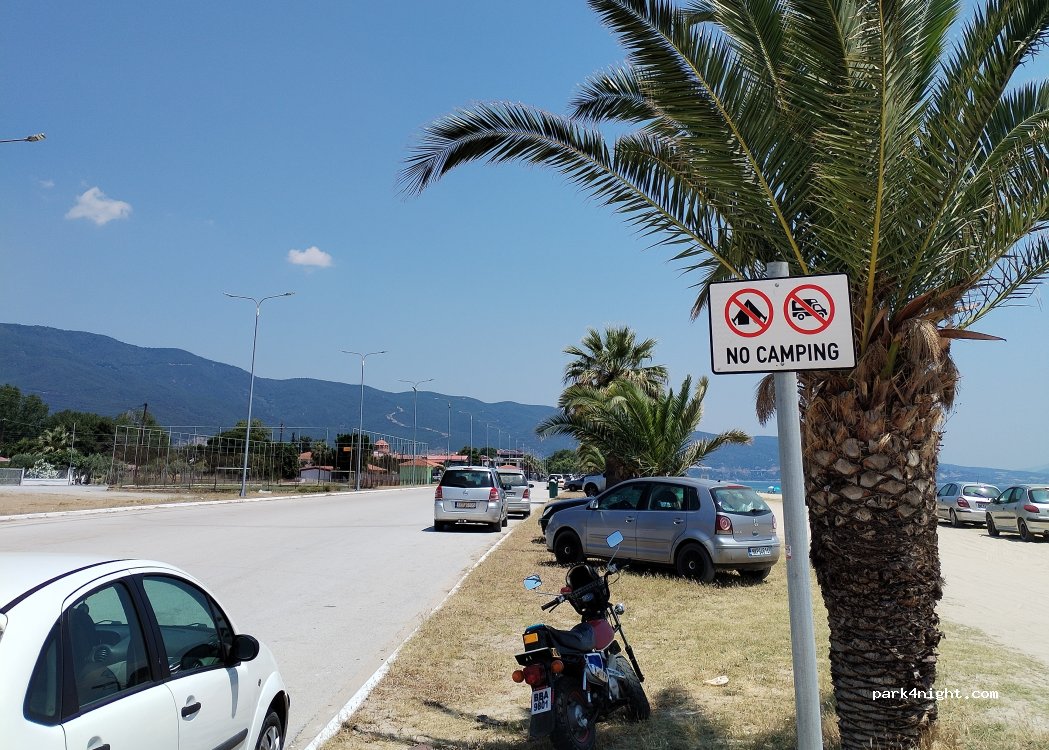 It is allowed to park in this place, but do not open the awning for shade and chairs in front of the camper, the penalty is 300 euros. Put the chairs and tables on the beach and there is no problem, you can sit parked for several days.