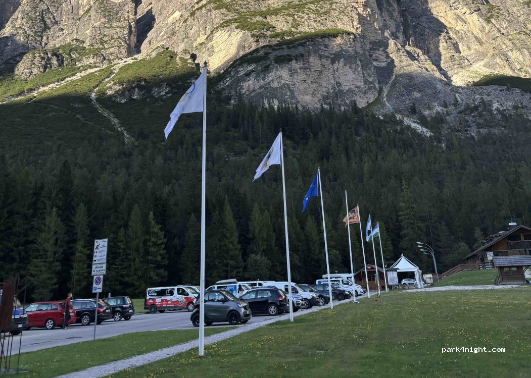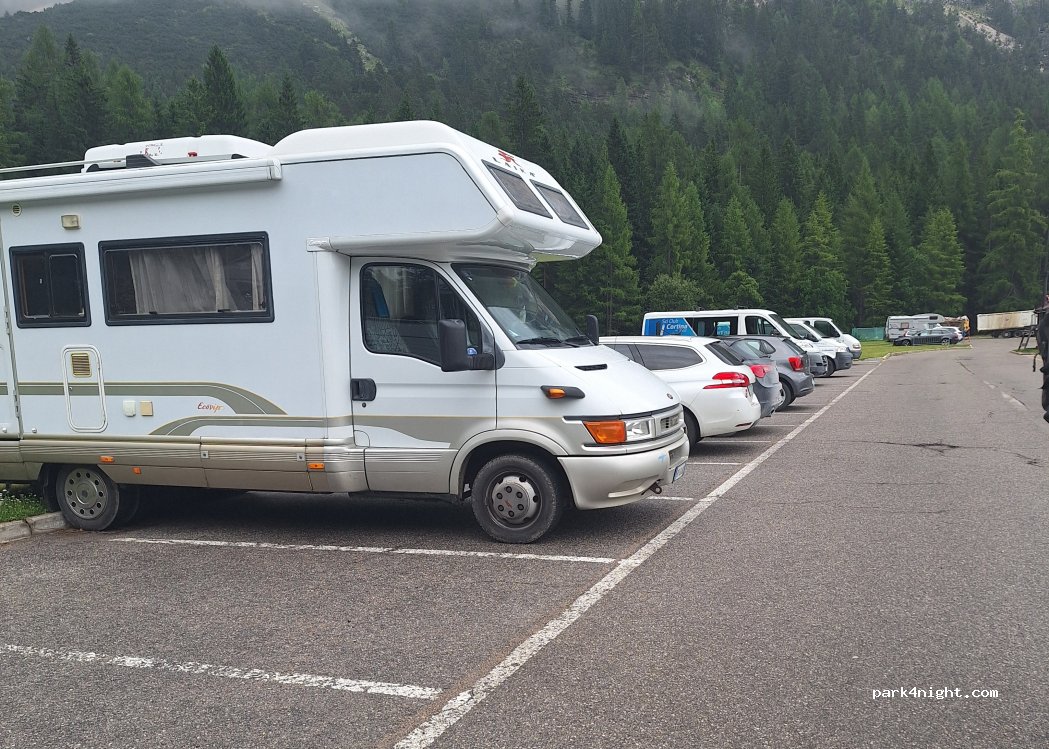 parcheggio per auto e camper. Divieto di campeggio. Comodo per iniziare l escursione verso le cascate di Fanes