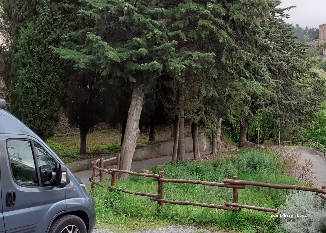 Anders als angegeben, ist der Platz keinesfalls eben. Nur mit Auffahrkeilen akzeptabel. Aussicht ist ebenfalls eingeschränkt wegen den Bäumen. Für eine Nacht ok. In der Gegend gibt es jedoch wenig besseres. Tipp zum Essen gehen: Vin e Pignatte im Ort oberhalb.