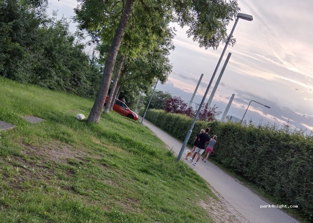Geschotterter Parkplatz zwischen Bundesstraße (80kmh) und Nekar. Mülleimer, Bänke und Beleuchtung vorhanden. Bei unserem Besuch (Ferien) viel Junges Publikum das zum chillen vorbeikam. Dadurch leider auch Lärm zusätzlich zur Straße bis 2 Uhr nachts. Sonst schöner Platz :) haben direkt auf dem Steg am Wasser gefrühstückt.