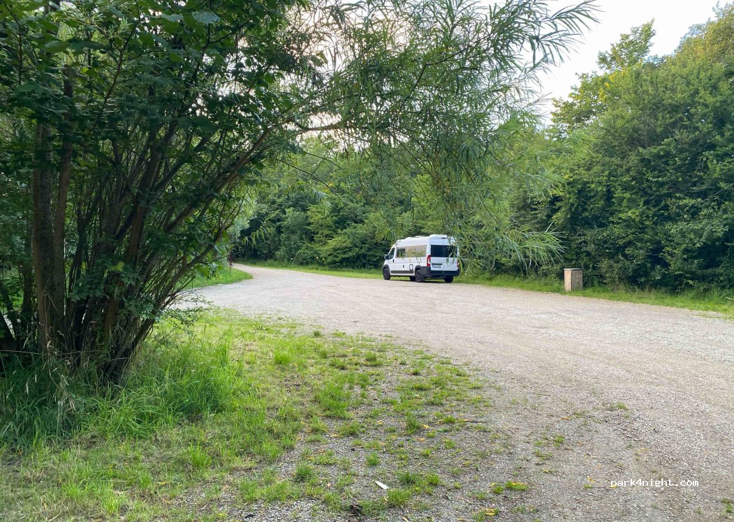 Parcheggio sul sentiero intorno a un lago. Fine settimana affollati ma tranquilli. C’è un bidone per le immondizie Vicino all’autostrada per parcheggiare di notte. Anche vicino alla città, ma super silenzioso.