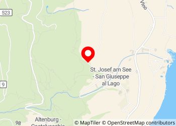 Kleine parkeerplaats in het bos boven het dorp San Giuseppe. Er is plaats voor een paar auto's. Toegang via een steile en smalle weg. Nabij Kalterer See en Rastenbachklamm