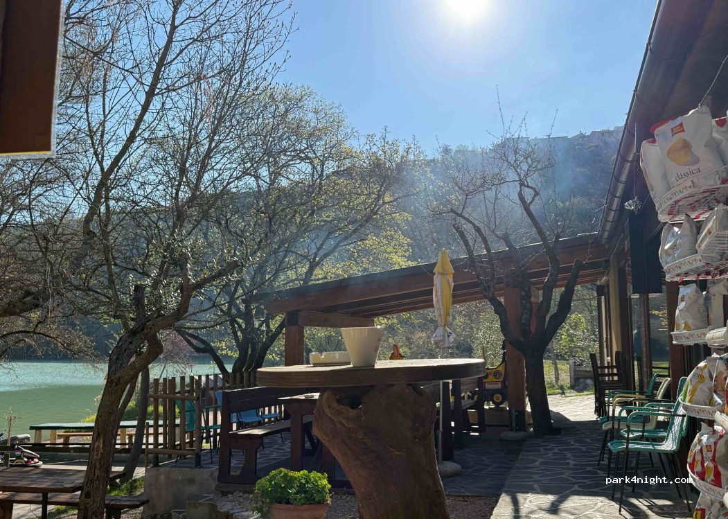 Kiosque bar-restaurant Valleverde avec vue lac ! nous avons dîné et séjourné dans ce beau restaurant, portions généreuses et prix corrects. il est possible de passer la nuit avec des camping-cars, caravanes et tentes. ils ont des salles de bain, de l'eau et de l'électricité, l'évacuation des eaux je ne sais pas... excellent emplacement, excellent accueil, la nuit c'est très calme. J'ai pris un litre d'huile "Coroncina", vraiment bonne ! possibilité de faire des promenades autour de tout le lac