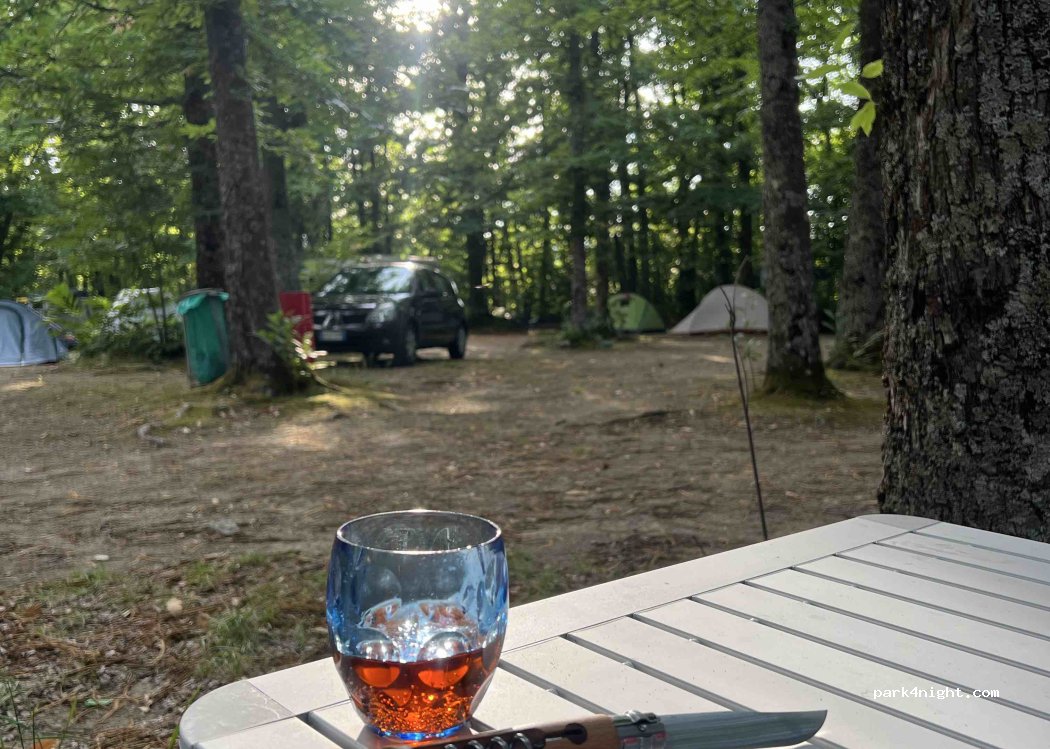 In mezzo agli alberi, pochi posti per camper. Strada stretta ma fattibile con un van 6mt. Il campeggio è grande, pulito, con docce, bagni, zona lavaggio stoviglie e zona lavaggio vestiti separate, lavaggio camper con lancia carico e scarico acque. Ha un bar e un ristorante, prezzi onesti cibo buono. Stabili vecchiotti ma puliti.