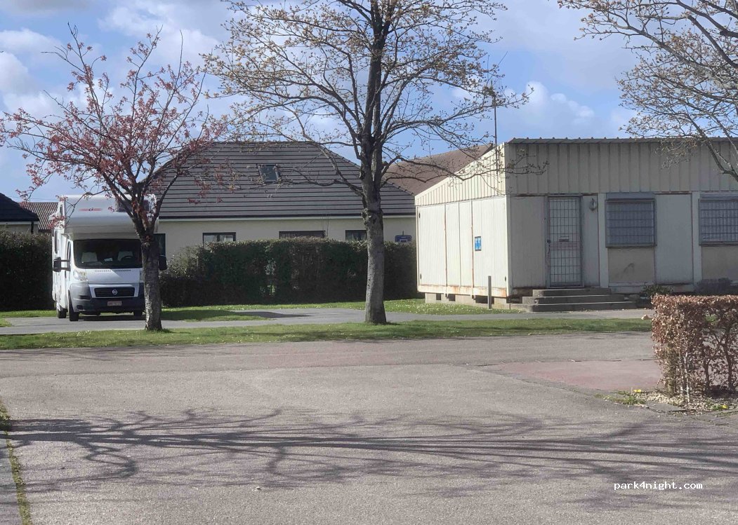 Great spot. Quiet location but two minutes walk from the shops and restaurants. Public toilet (24h) about 50 metres away. €3 gets you some electricity or 100 litres of water. Small supermarket in town open all day Sundays. 10 minutes from the ferry in Dieppe.