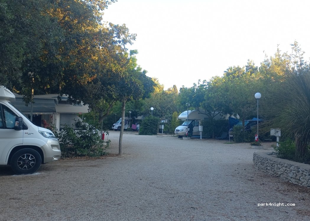 bellissima area sosta , bagni nuovi ,lavapiatti nuovo , servizio navetta per le spiagge e si può ordinare il pane, focacce e brioche che ti arriva al mattino. Organizzano anche eventi.. il centro molto bello si raggiunge con 10 minuti di camminata. Consigliata