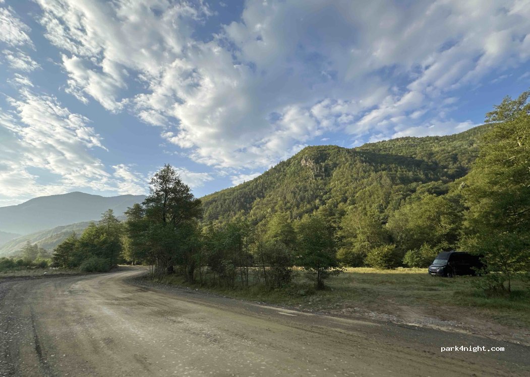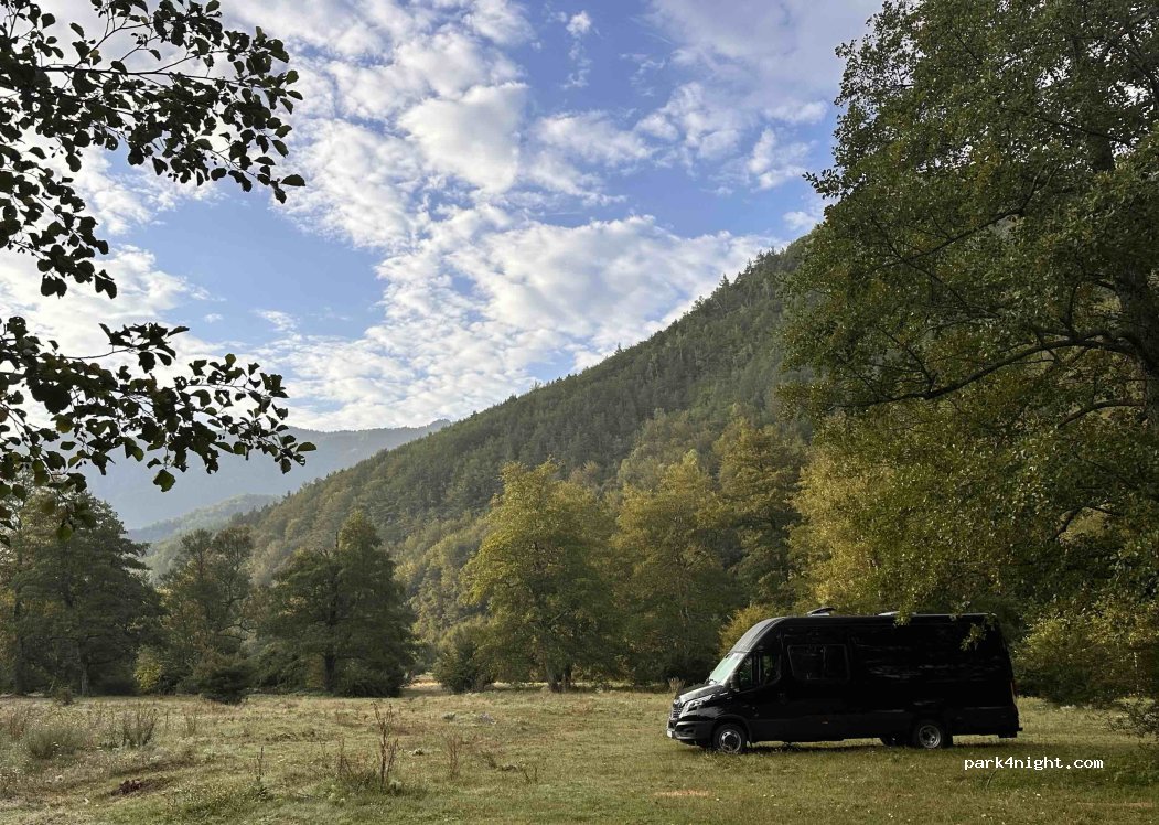 Nous avons passé deux nuits dans cette prairie au bord de l'eau. Calme, juste le passage de quelques vaches et d'enfants qui les accompagnent. Très accessible avec notre 8m30. Pas de réseau internet. Une source d'eau juste avant d'arriver.