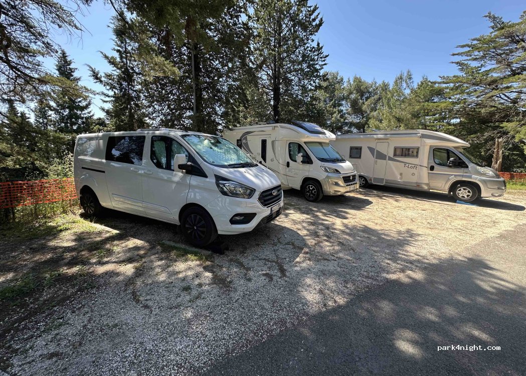 The cypress parking is paid and shaded for Camper / van cars. Under the Rocca di Gradara and the air theater.