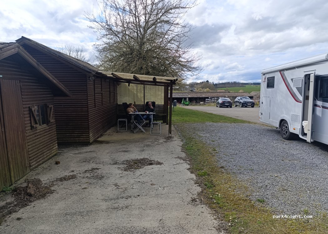 Endroit calme, asphalté et plat près d'une ferme. Entouré d'herbe et de quelques arbres pour manger à l'ombre ou faire la sieste. Pas de commodités. En journée parking promeneurs. Nuit calme avec 2 autres vans.