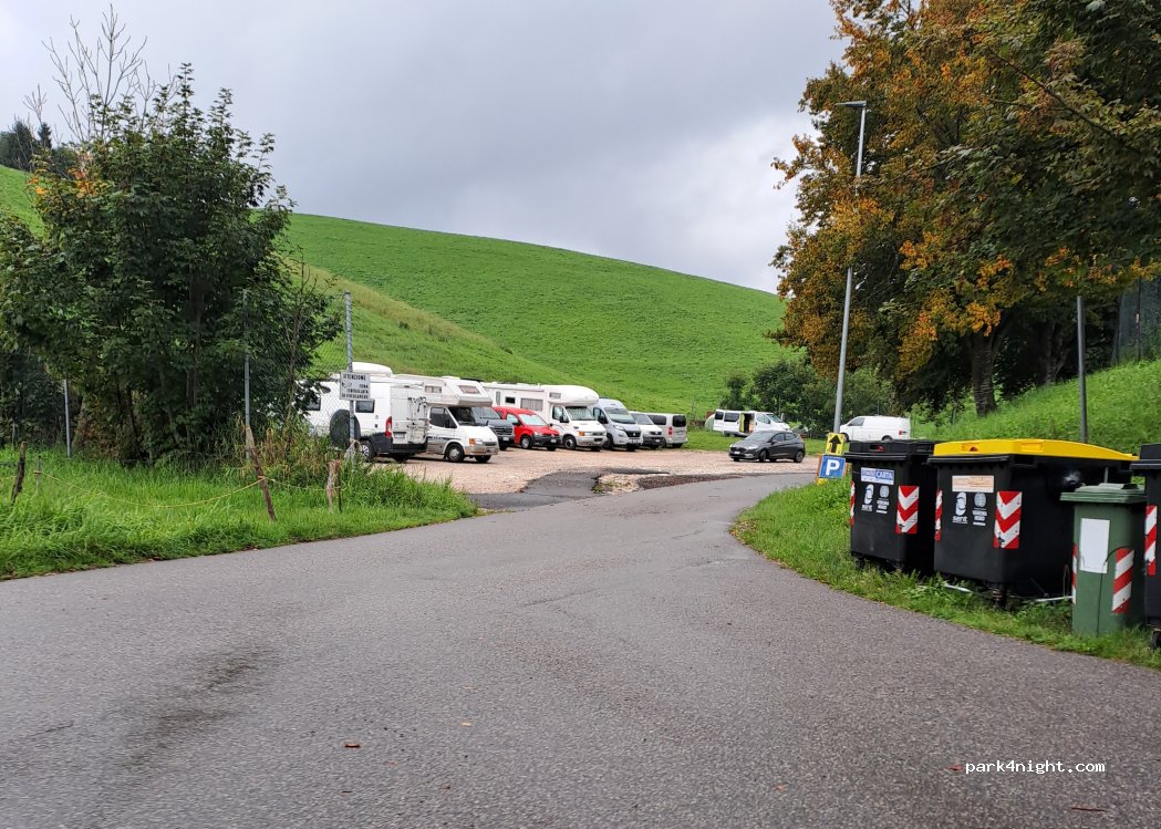 Parcheggio semi sterrato e erba con pietrisco, nessun servizio acqua . Niente di particolare comodo al paese di velo veronese a cinque minuti. Adatto a passeggiate non impegnative ma non per stanziare troppo. Tranquillo nessun problema ordine pubblico, in montagna non c’è nessuno se non qualche mucca .