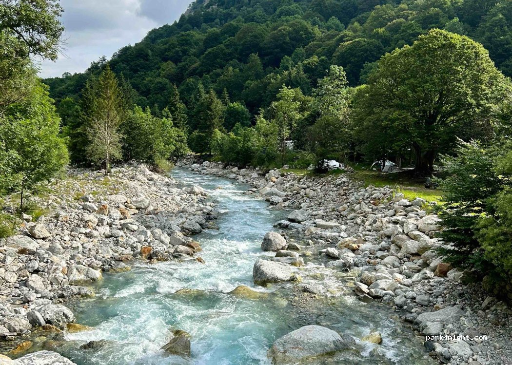 Beautiful campsite where the road ends and two rivers join from separate valleys. Starting point for many hikes up in the mountains. We don’t have many rules here said Lucca the owner. So you can make a bonfire at your spot. Small streams with watermills cross the campground. Kids have the time of their live here. The super friendly staff does great cooking. The place vibrates positively.