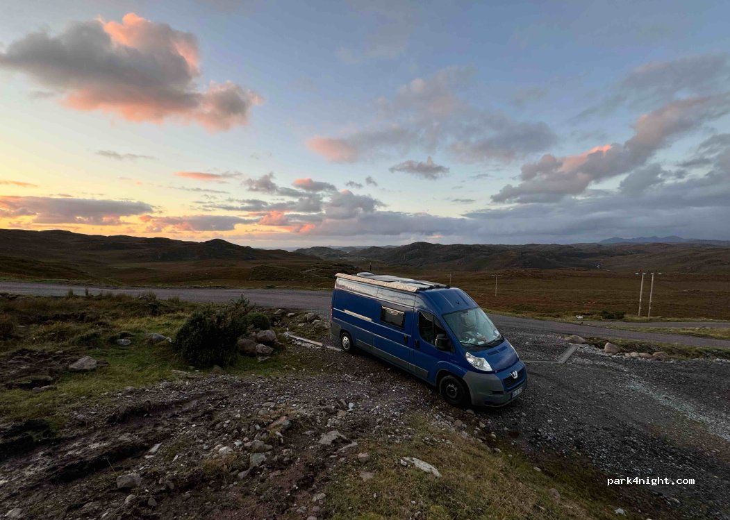 Parked here several years ago and created this addition to P4N. I’ve not been back for a while and don’t know anything of the new works being carried out. It’s a spectacular view and if your in the area see if it can accommodate your van. Suilven is just magical!