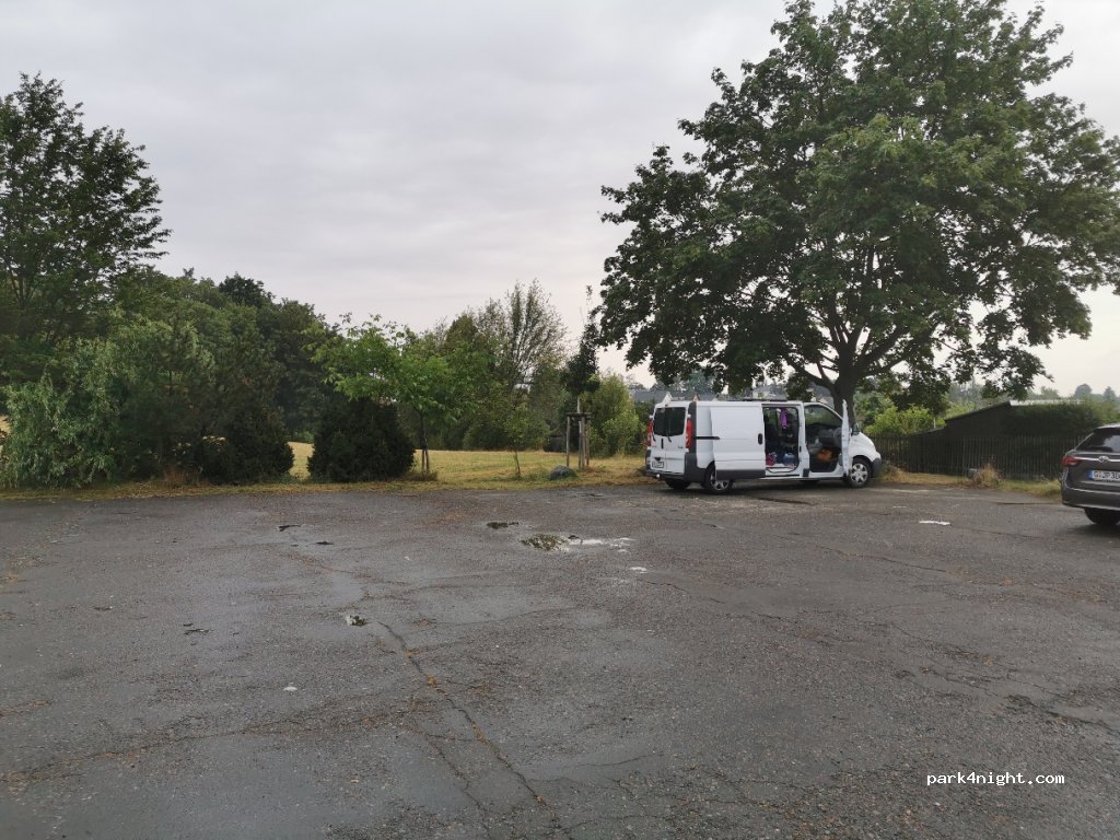 Parking lot (free of charge) at an allotment garden, no water or electricity, no lanterns, restaurant 150 m away. Very quiet, undisturbed.