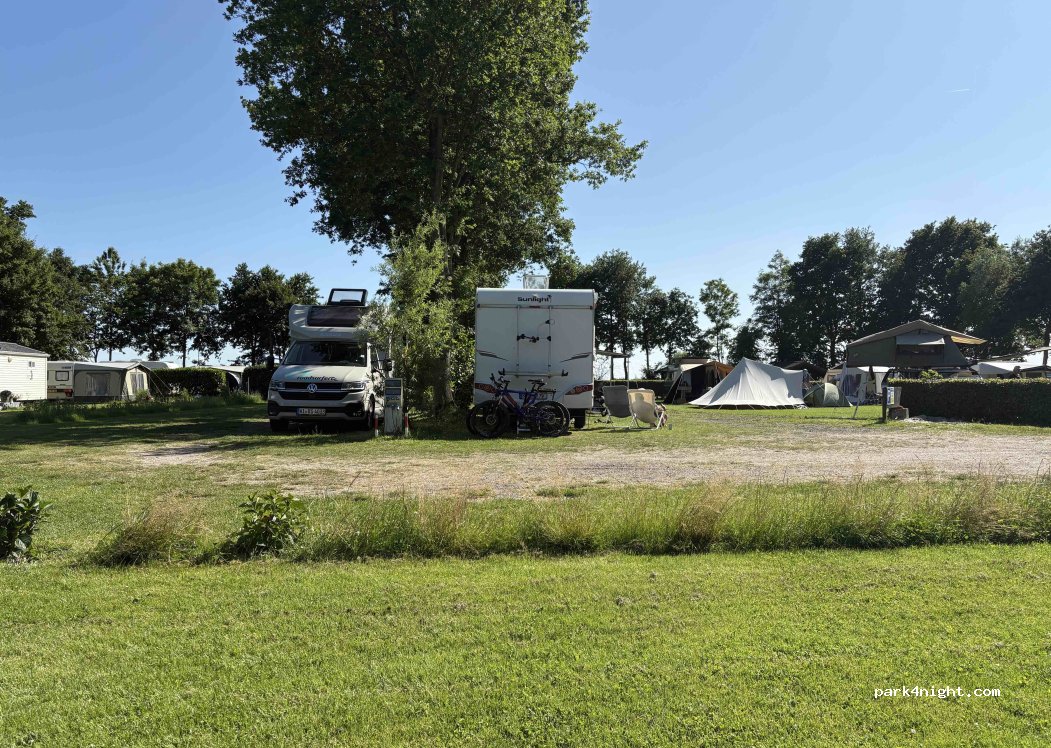 Looks nice enough on ride past on bikes and close to amenities but be aware motorhomes over 3.5 tonne are not permitted ! The site did recommend us as a neighbouring village campsite which is absolutely beautiful and very welcoming !