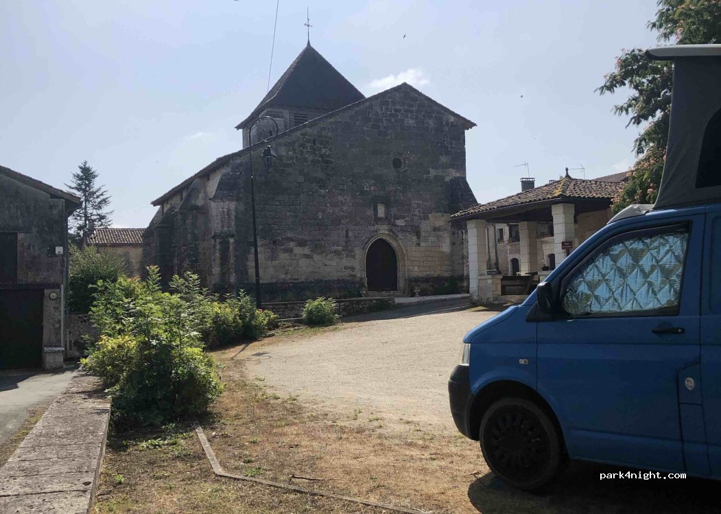 parking au pied de l'église, si vous n'aimez pas les cloches passez votre chemin ;) Ayant vécu 25 ans au pied d'une église, ça nous a rappelé des souvenirs et nullement gêné, sinon tranquillité assurée, vue sur la forêt, toilettes à disposition merci au Bourg de son hospitalité