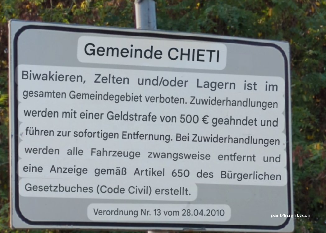 Für Entsorgung und Frischwasser ok, für Übernachtung nicht so sehr geeignet, Empfehlung zum neuen Parkplatz ( Italy 65017 ) Penne,Piazzale Portella fahren.
