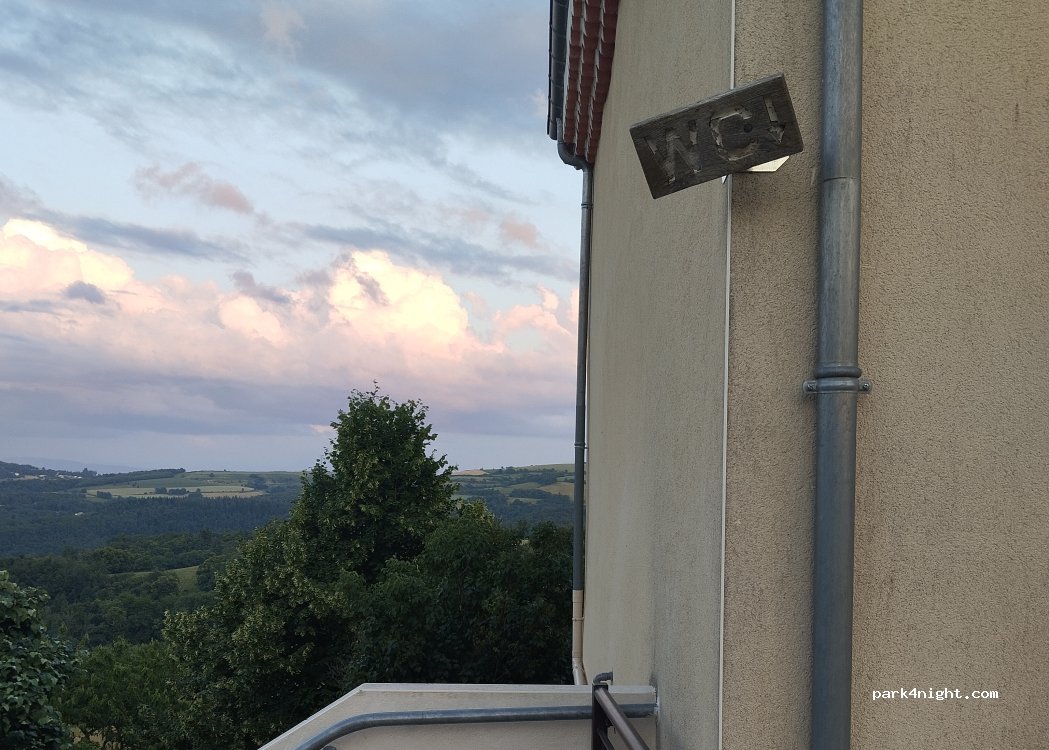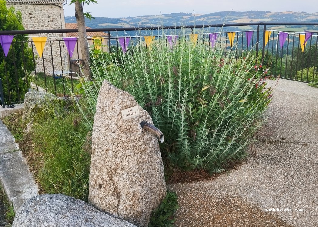 Petit emplacement, selon places en pentes. Petites routes d'accès mais ça va encore. Nuit calme passage de quelques voitures. Possibilité de marche et voir la pierre mégalithique. Tous les jeudis soirs, vente dans le village de pizzas cuites au feu de bois, desserts et produits régionaux. Boulodrome et les gens sont très gentils. Parking très convoité la journée