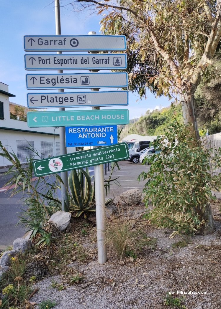 Unicas plazas gratuitas q encontré en este pequeño y pintoresco pueblo que merece la pena visitar. son unas 5-6 plazas frente al hotel. al otro lado d la carretera según se sale del túnel. lo malo es el ruido. lo bueno q estás en el centro, y frente a la playa.