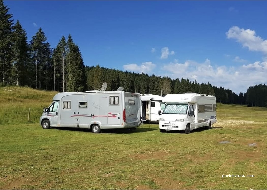Posto meraviglioso, facilmente raggiungibile con una comoda strada di montagna. € 10 al giorno in alta stagione. Su prato, con stalli ampi per ogni camper: c'è spazio per tendalino, tavolo, ecc. Intorno pascoli, pinete e temperatura ideale.