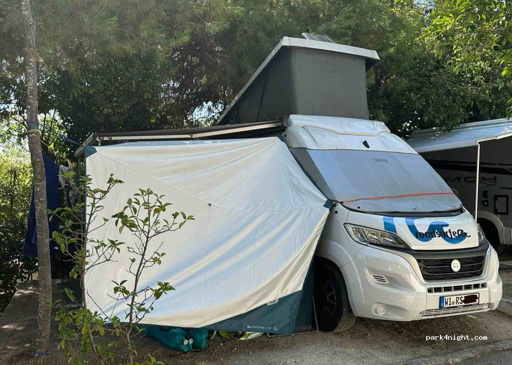 Der Campground ist einfach super. Ein wunderschöner Platz, welcher ausreichend Platz für ein California mit ausgekurbelter Markise und ein grösseres separat stehendes Zelt bietet. Der Boden ist sehr gut befestigt, das man Heringe aus Metall verwenden sollte. Die Sanitäranlagen sind sauber und in einem guten Zustand. Das WC Papier sollte man nicht vergessen.Bei den Duschen evtl. vorher probieren wieviel Wasser kommt (erspart einem evtl. wieder das ankleiden) Papierkörbe und Entsorgungsstationen sind vorhanden. Auch ein Pool. Spielplatz ein Restaurant und ein kleiner Einkaufsladen (in dem es auch WC Papier gibt) sind vorhanden. Beim Restaurant ist auch das beste WiFi, wo man sich hinsetzen kann .Das Personal ist sehr freundlich und hilfsbereit. Nicht jedem gefällt es einen Platz zugewiesen zu bekommen, aber auf Grund der Erfahrung wissen die Leute was sie tun. Auch das einweisen auf den jeweiligen Platz ist für den nicht so versierten Fahrer sehr hilfreich,um Schäden am Fahrzeug und oder den Bäumen zu verhindern. Das Personal ist sehr präsent,um sich um die Anlage zu kümmern. Der Weg zum Strand ist etwas unbefestigt, daher sollte man passendes Schuhwerk anziehen. Der Blick auf das Meer und die darunter liegende Bucht sind faszinierend.Auch wenn die Platzordnung für manche Gäste etwas zu hart erscheint, ist sie doch völlig in Ordnung. Was die Zufahrt betrifft ist folgendes zu erwähnen. Der Platz liegt geographisch an einem Berg. Die Strasse ist teilweise nicht für das kreuzen von Wohnwagengespannen geeignet . Oben an der Strasse steht jemand vom Personal mit Funkgerät und unten an der Rezeption mit Funk. So wird ein Chaos am Berg vermieden.