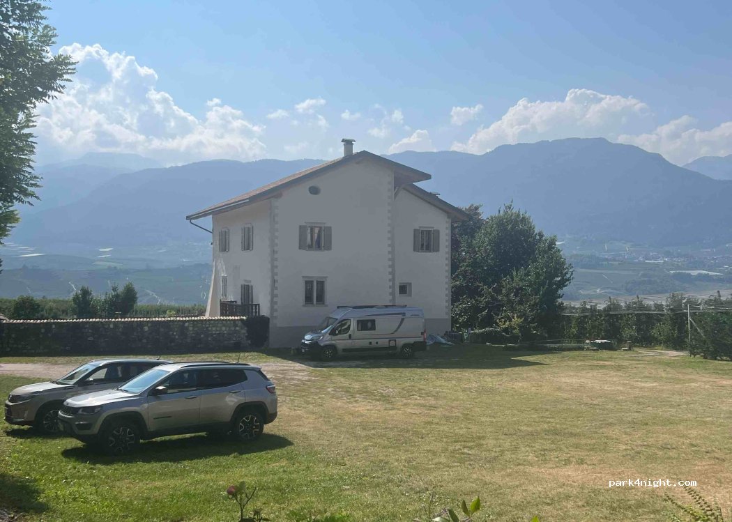 Parcheggio su erba relativamente in piano ci siamo messi verso i meleti e abbiamo passato una notte tranquilla! Ci siamo sentiti ben’accolti dai locali che ci hanno consigliato visita al lago di Tovel, stupendo! Grazie mille!