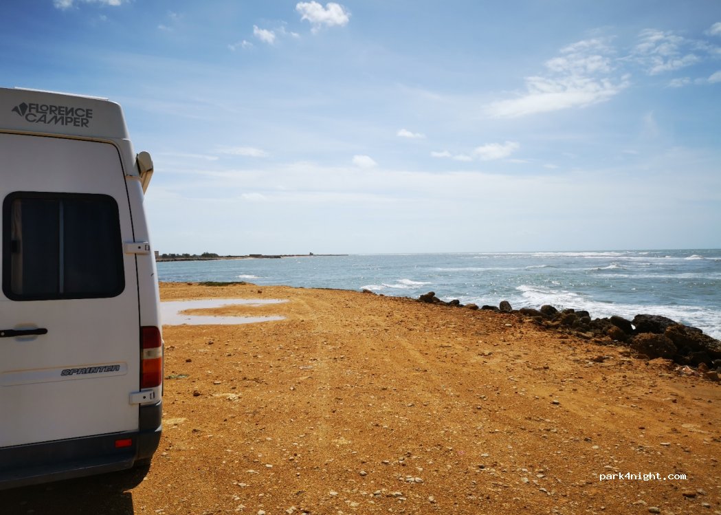 Grand parking idéal pour faire dormir son van ou camping-car. Vue magnifique face à la mer. Pas trop sale pour la Sicile.
