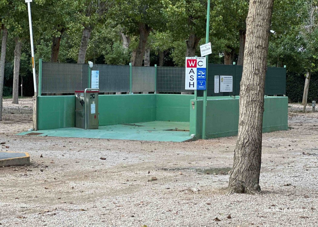 L’area sosta si sviluppa quasi completamente all’ ombra,il suolo è pianeggiante ed ogni piazzola ha la colonnina per la 230v. Il personale è cordiale e si raggiunge la spiaggia e la ciclabile attraversando la strada. Molto tranquilla la sera(check in entro le 20). Unica pecca i bagni (2 piccoli)e la doccia completamente all’aperto con acqua tiepida. Buon rapporto qualità prezzo.