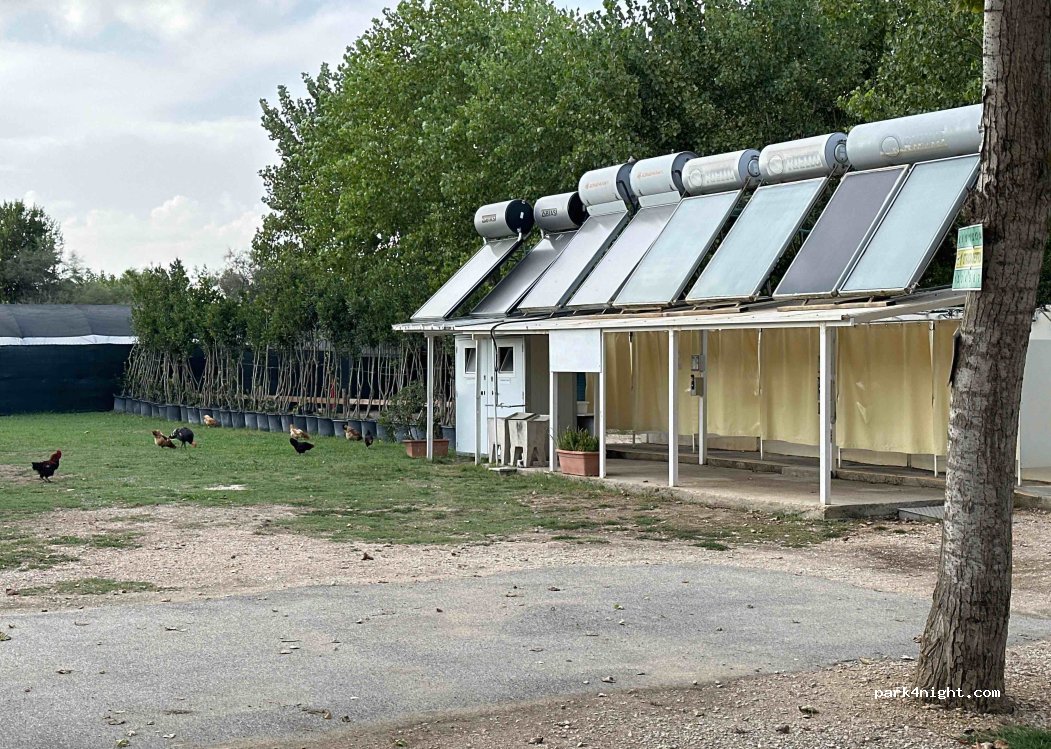 Posto tranquillo , spazi tra i camper ristretti , 2 bagni chiusi per tutta l’area , doccia calde a pagamento a cielo aperto , la porta , un telo svolazzante , i nostri amici pelosi , non posso fare nessun bisogno all’interno dell’area , mentre le galline del proprietario ( almeno una ventina ) possono girare indisturbate in tutta l’area ….