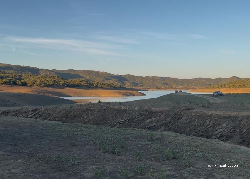 Abierto donde dejar el vehículo, de día y de noche, sin vigilancia y sin servicios pero en buena zona. Posibilidad de nadar en el pantano y pescar.