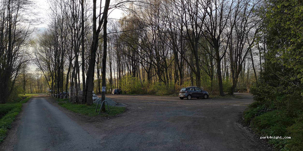 Place de parking sous les arbres pour environ 30 voitures. À proximité, dans le Volkspark Bokel, il y a une aire de jeux, un enclos pour chiens clôturé et un lac de baignade. Nous n'avons pas passé la nuit, mais il n'y a pas de panneau d'interdiction.
