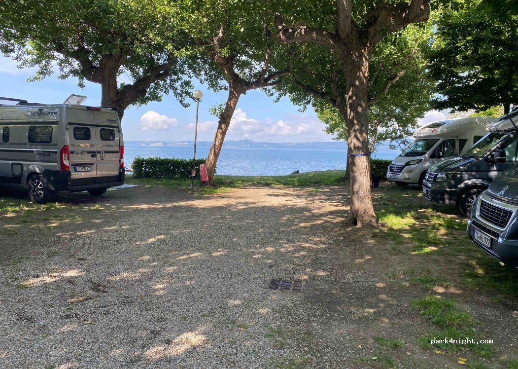 Waren als Durchfahrer hier sprich lediglich für 1Nacht, grosse Stellplätze jedoch nicht alle haben Schatten, direkt am See wird sehr gepflegt, Sanitäranlagen soweit IO jedoch pro 5min zusätzlich 0.50Cent. Bolsena ist mit dem Fahrrad oder zu Fuss am See entlang gut erreichbar. WLAN kostenpflichtig und funktionierte bei uns nicht.