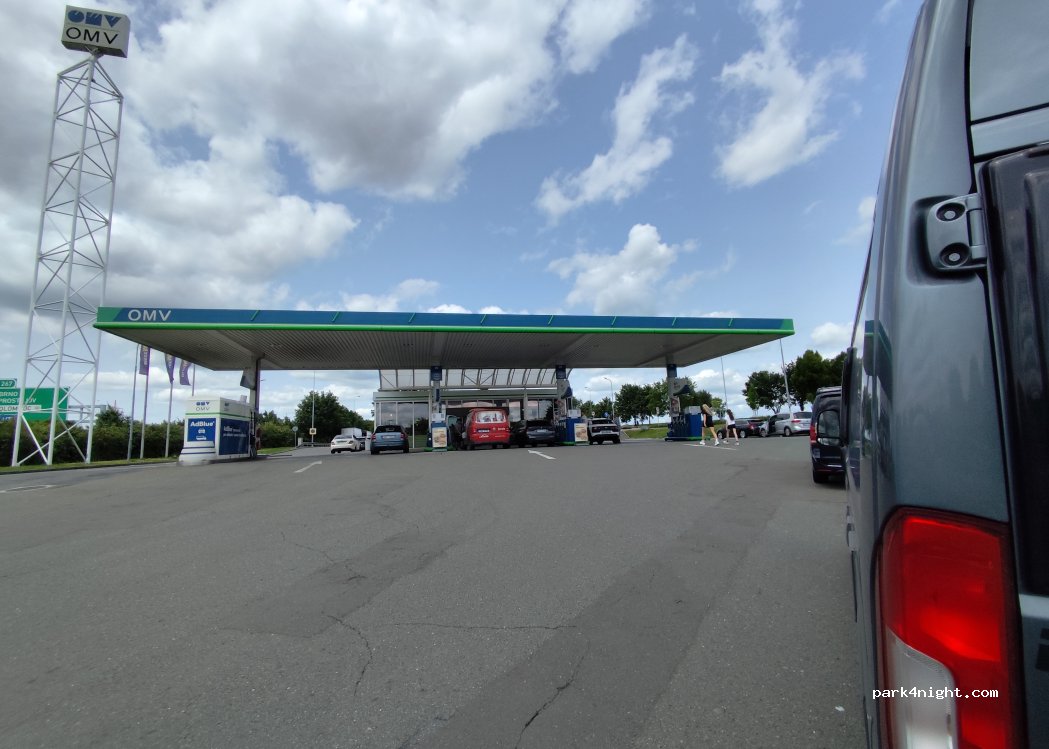 Parken in der Nähe der Autobahn, Tankstelle geöffnet von 0: 00-24: 00 Uhr. Ruhig, etwas Lärm von der Autobahn, aber nicht störend. Viele Lastwagen und einige andere, die anhalten, um die Nacht zu verbringen.