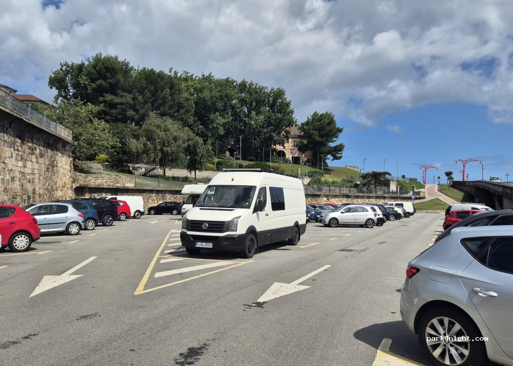 Es un parking para vehículos pequeños, pudimos aparcar una camper larga pero muy justa. A unos 15min andando del centro. Genial para visitar la ciudad sólo si es con camper.