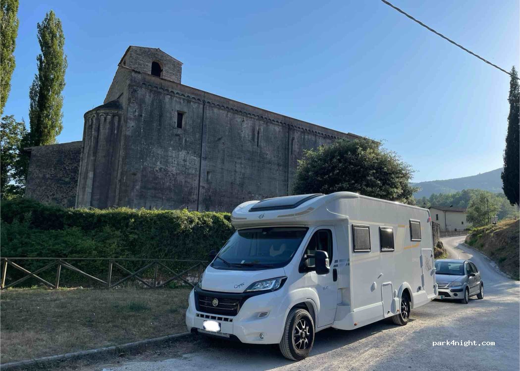 Fabulous place on the edge of a charming country village, Castel San Felice, on the edge of a river sublime in summer for its freshness. Parking without indication, some places in the shade, perfectly calm, flat, good cellular network, clean. A place not to be missed when it is too hot in summer: the young people of the area gather around a beautiful bridge to swim, the real Italy. The water is very cool, the grass in the field next door is mowed for lounging on a towel. Happiness !
