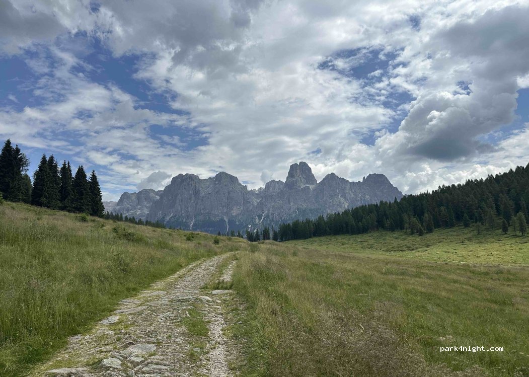 Parking gratuit en gravier. A 200m du Lac Calaita, départ d'excursions avec une vue imprenable sur le Pale di San Martino !