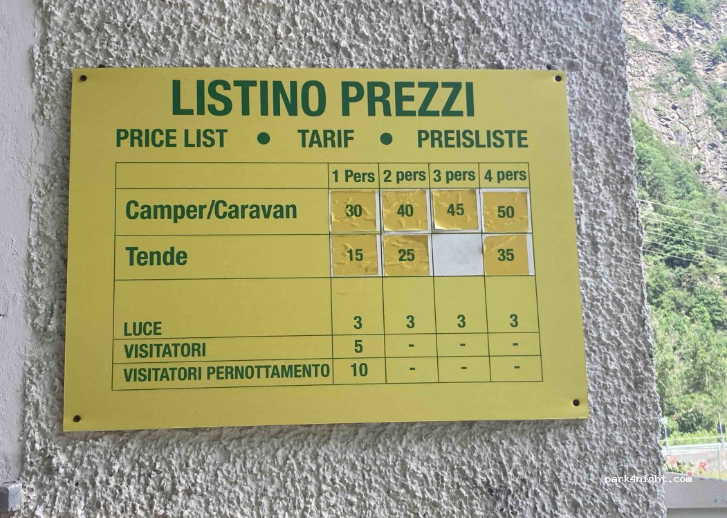 Camping semplice, pulito bar e ristorante, gestori gentili 50 euro al giorno in 5 . Comodo per sciare vicino ( 300 m a piedi) sky express per salire impianti Motta Madesimo. C'è anche lo ski -room per lasciare sci e scarponi consigliato!