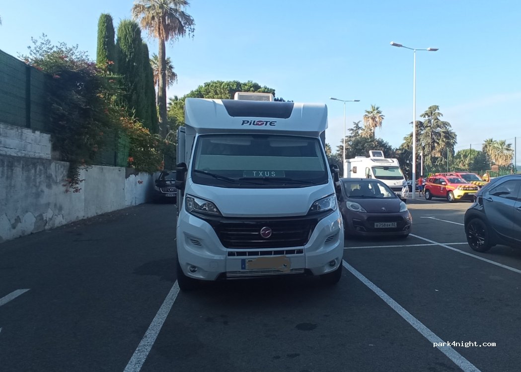 ottimo posto dove potersi fermare, controllato 24h/24h 3 minuti dal mare e 15 dal centro di cannes, sbarre aperte giorno e notte, quindi no limite di altezza, posto tranquillo e controllato, consiglio di arrivare la mattina presto o la sera tardi.
