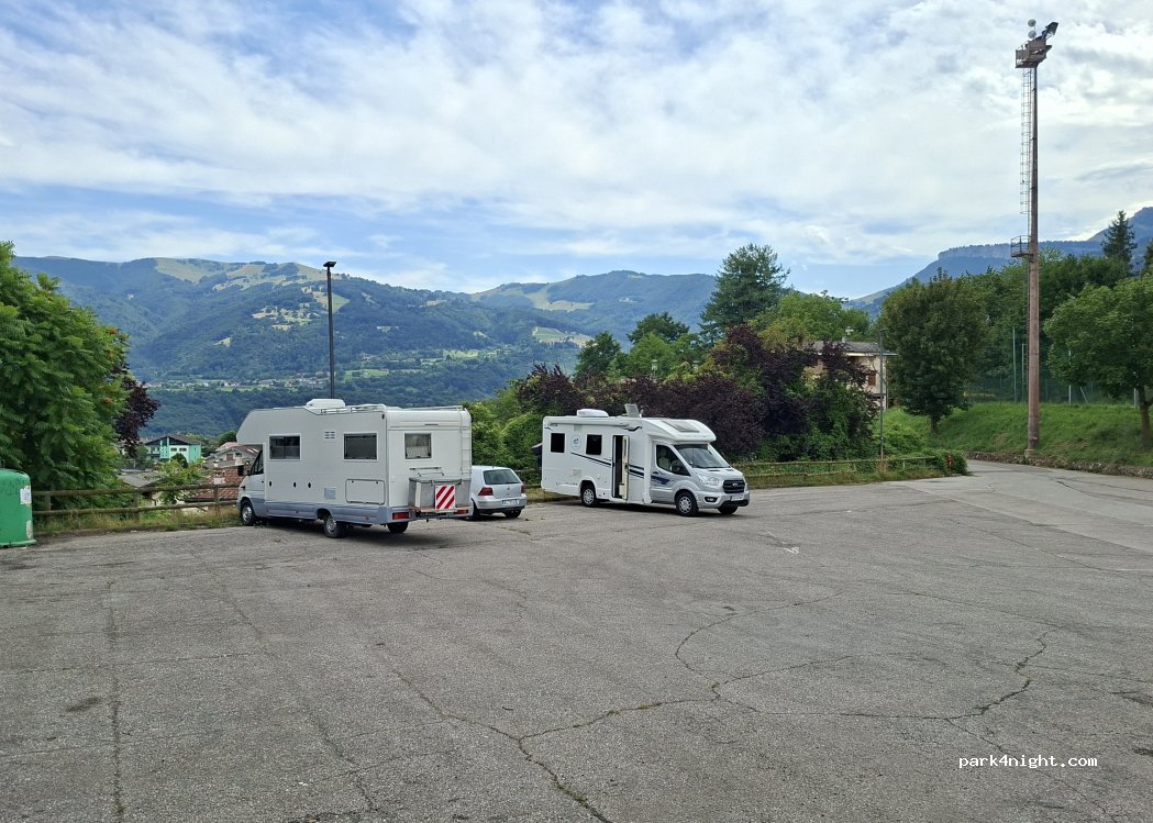 Beau parking à côté du terrain de sport. Il y a un robinet d'eau sur place. Cet endroit est moins fréquenté que le camping du centre-ville. Très calme la nuit.